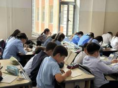 Уг сургуулийн нэгдүгээр анги, дунд ангийн хүүхдүүд нэг ширээнд гурваараа сууж, хичээллэж байгаа юм. Энэ хүрээнд тус сургуульд нийслэлийн Засаг даргын орлогч А.Амартүвшин ажиллалаа.