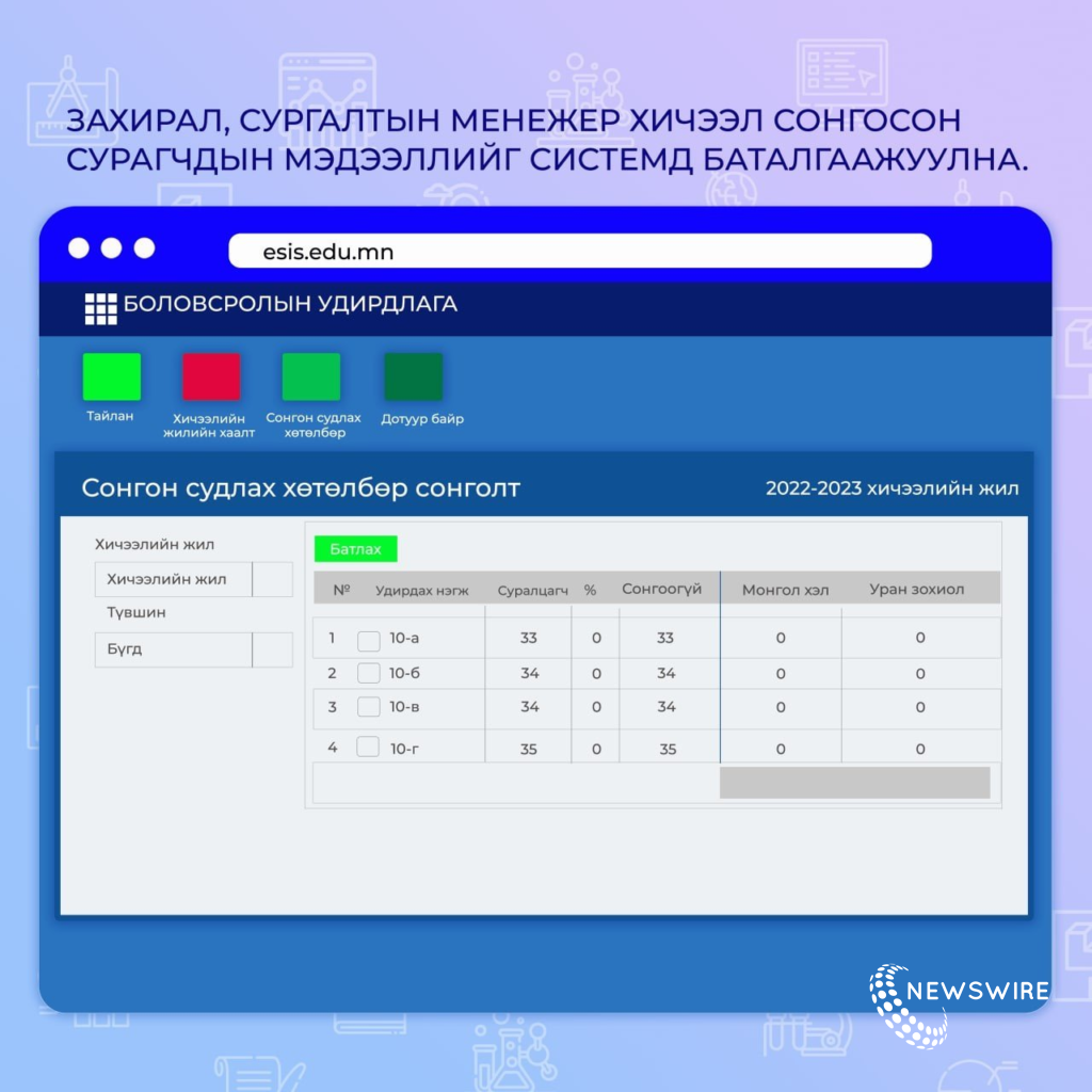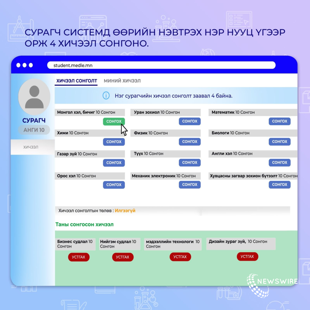 Ерөнхий боловсролын сургуулийн 10 дугаар ангид суралцах сурагчдын сонгон судлах хичээл сонголтыг Student.medle.mn системээр бүртгэж эхэллээ.