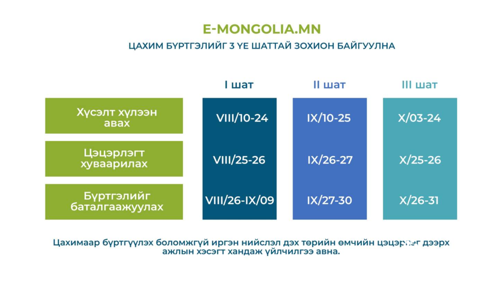 Цахим бүртгэлийг 3 үе шаттай зохион байгуулна.