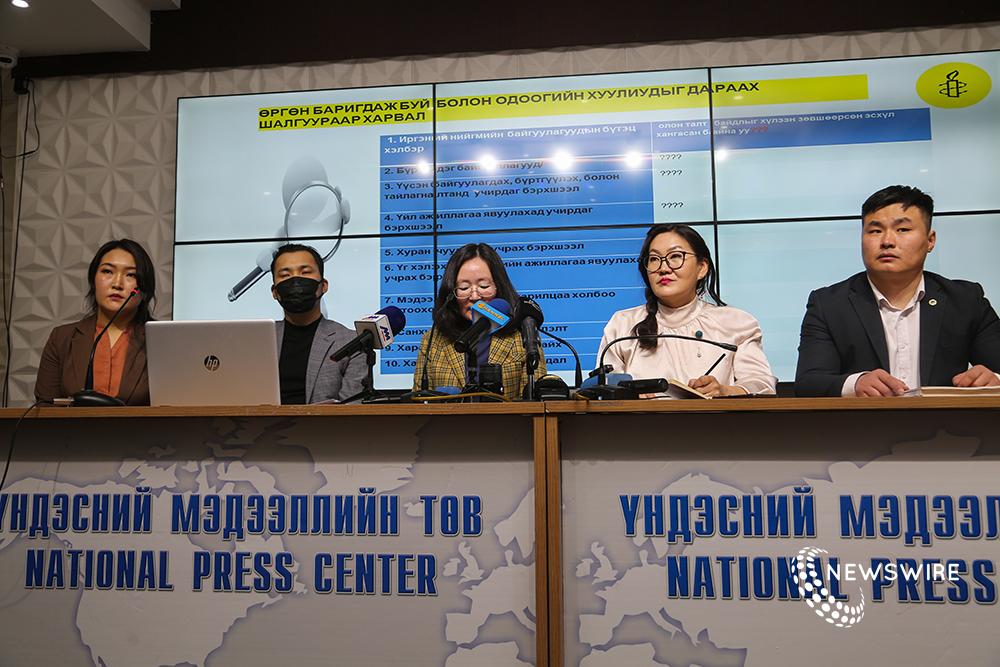 -COVID-19-ийн үед иргэний болон улс төрийн эрхийн зөрчлийн судалгаа хийсэн юм. Энэ судалгаагаар гурван хүний иргэний эрхэд судалгаа хийхэд 222 зөрчил бүртгэгдсэн. Үүн дээр мэдээлэлтэй байх эрх 108, эвлэлдэн нэгдэх буюу жагсаал цуглаан хийх 52, үзэл бодлоо илэрхийлэх эрх чөлөөний 63 зөрчил гарсан. Гарч буй зөрчил бүр дээр хуульчдын багаас дүгнэлт хийсэн. Энэ зөрчлүүдийн 93 хувь нь төрийн байгууллагын албан тушаалтнаас шалтгаалан гарч байна. Харин зөрчлийн хохирогчийн 90 гаруй хувь нь иргэд юм. Орон нутгийн харьяаллаар авч үзэхэд 90 гаруй хувь нь нийслэлд үйлдэгдэж байгаа зөрчил байна. Зөрчлийн хуулийн 5.13.1 гэсэн заалтаар 2020 онд 1340 хуулийн этгээд иргэнийг торгосон. Энэ нь олон нийтийг төөрөгдүүлсэн мэдээ тараасан гэдэг үндэслэлтэй. Үүнээс харахад төр хамгийн байгадаа нэг хуулийн, нэг зүйл, нэг заалтаар 740 сая төгрөгийг завшсан гэж хэлж болно.
