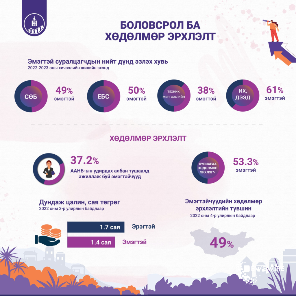 #инфографик, #ҮСХ: Эмэгтэйчүүдийн сарын дундаж цалин 1.4 сая төгрөг байгаа,