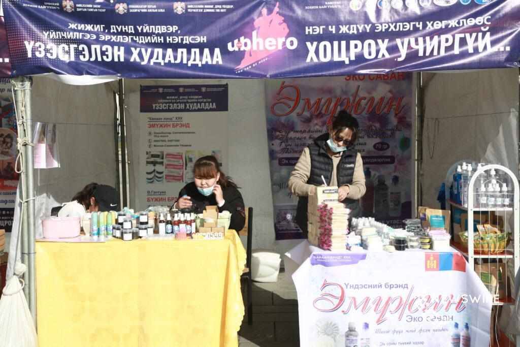 Жижиг, дунд үйлдвэр, үйлчилгээ эрхлэгчдийг дэмжих “You can be Hero” нээлттэй өдөрлөг, үзэсгэлэн худалдаа төв талбайд гурав дахь өдрөө үргэлжилж байна. Тус өдөрлөгийн хүрээнд 130 гаруй аж ахуйн нэгж, өрхийн үйлдвэрлэгч уран гараараа шаглан оёсон дээл, цүнх, хувцас, сэтгэлээ шингээж хийсэн арьсан эдлэл, саван, ванны давс, модон эдлэл зэрэг 1,500 нэр төрлийн бүтээгдэхүүн дэлгэжээ. Үйлдвэрлэгчдийн олонх нь эмэгтэй хүмүүс байх бөгөөд бизнесийнхээ санааг нярай биетэй, гэрт хүүхдээ харан сууж байхдаа олсон гэнэ. Тэдний зарим нь үйлдвэрлэлээ цар тахлын үед эхлүүлсэн. Харин нөгөө нэг нь олон жилийн өмнө бизнесээ эхлүүлж, цах тахлын үеэр үйлдвэрлэл нь зогсонги байдалд ороод, эргэн сэргэсэн гэнэ. Тэдний жаргал зовлонг хуваалцан, төв талбай дахь үзэсгэлэнг сонирхсоноо сийрүүлье.