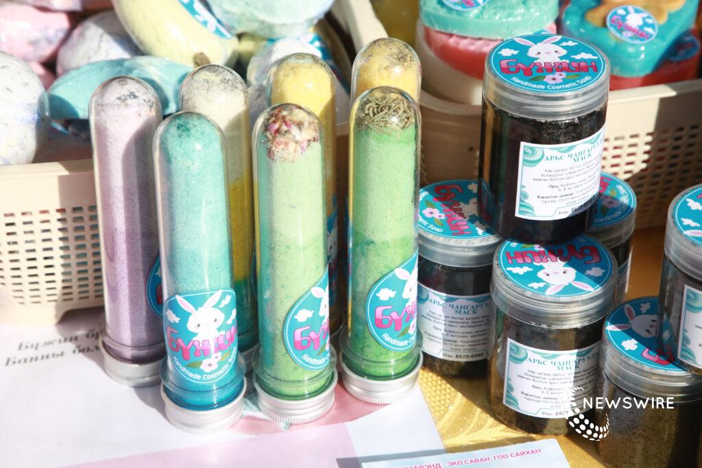 Төрийн ордны урд энгэр, талбайн хойд хэсэгт байх нэгэн асарт очвол олон төрлийн хэлбэртэй гарын саван, тос зэрэг хүний анхдагч хэрэгцээний бүтээгдэхүүн дэлгэсэн байв. 40 эргэм насны гэмээр үйлдвэрлэгч эмэгтэй “Манайх шар тостой уруул өнгөлөгч, тэжээлийн болон хүүхдийн биеийн саван үйлдвэрлэдэг. Мөн бэлгийн багц гаргаж, бүтээгдэхүүнүүдээрээ нээлттэй өдөрлөгт оролцож байна” хэмээн танилцуулав. Түүнтэй цөөн хором ярилцсан юм.
