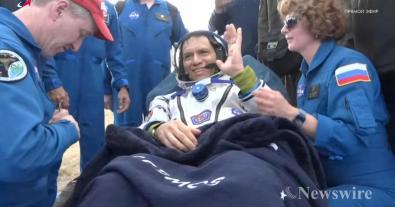Олон улсын сансрын станц (ОУСС)-д 371 хоног үүрэг гүйцэтгэсэн Америкийн сансрын нисгэгч Фрэнк Рубио болон Оросын хоёр сансрын нисгэгч лхагва гарагт Казахстаны тал нутагт газардлаа.