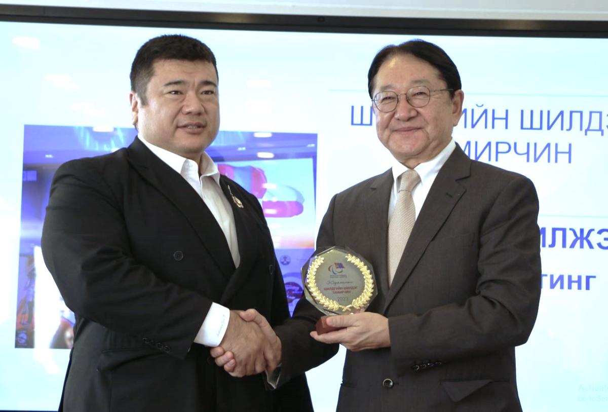 Энэ ёслолын үеэр МҮПХ-ны ерөнхийлөгчийн нэрэмжит шагналыг Монголын тэргэнцэртэй сэлэмний холбооны нарийн бичгийн дарга О.Анударьд олголоо. Түүнийг тэргэнцэртэй иргэдийг багийн спортоор хичээллэх, спортын амжилт гаргахад үнэтэй хувь нэмэр оруулж, тус спортын төрлийг Монгол Улсад хөгжүүлэхэд онцгой гавьяа байгуулсан хэмээн шагнасан юм байна.