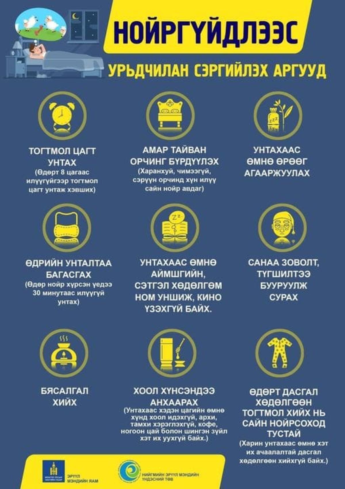 Бүх насныханд томуу, томуу төст өвчнөөс урьдчилан сэргийлэхэд сайн унтаж амрах маш чухал тул чанартай нойр авахад анхаараарай.