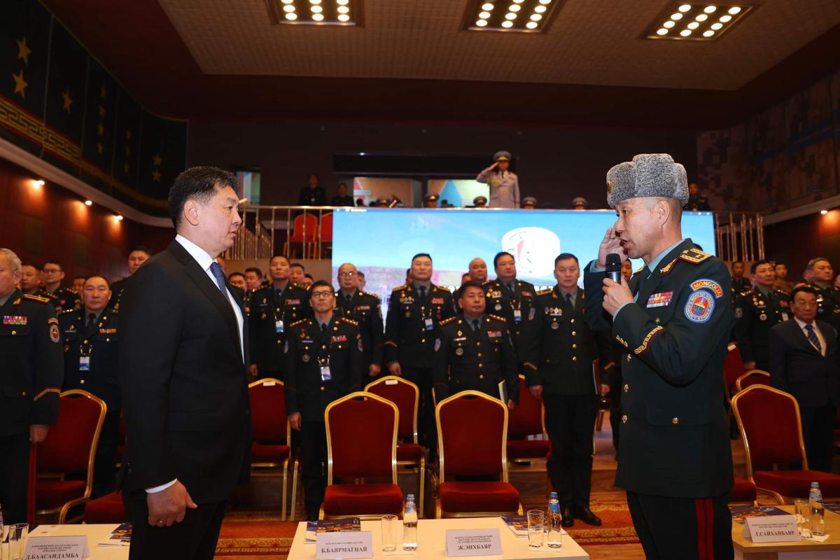 Монгол Улсын Ерөнхийлөгч, Зэвсэгт хүчний Ерөнхий командлагч Ухнаагийн Хүрэлсүх цугларалтад оролцон, удирдах бүрэлдэхүүнд үүрэг, чиглэл өгөв.