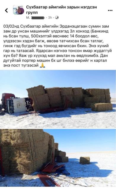 Олон нийтийн цахим сүлжээнд 2024.03.02-ны өдөр "...эвдэрсэн ачааны машинаас өвс, шатахуун хулгайд алдагдсан байна..." гэх мэдээлэл нийтлэгдэж байсан.