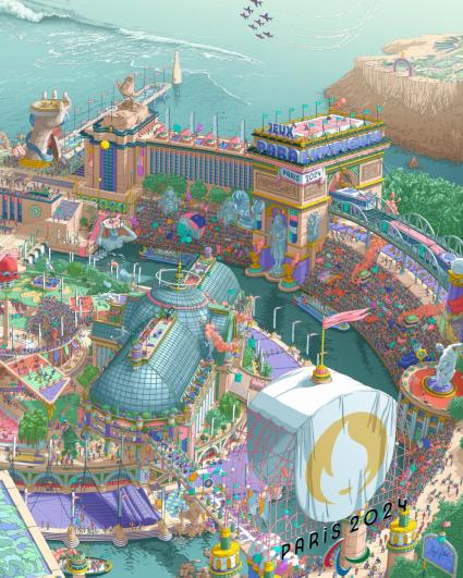 Олимпын үнэт зүйлс гүн шингэсэн энэ удаагийн наадмын албан ёсны зурагт хуудас вектор дүрсээр, 5 метр өндөр, 4 метр өргөн хэмжээтэйгээр Парисын “Орсе” музейд олон нийтэд дэлгэгдлээ.