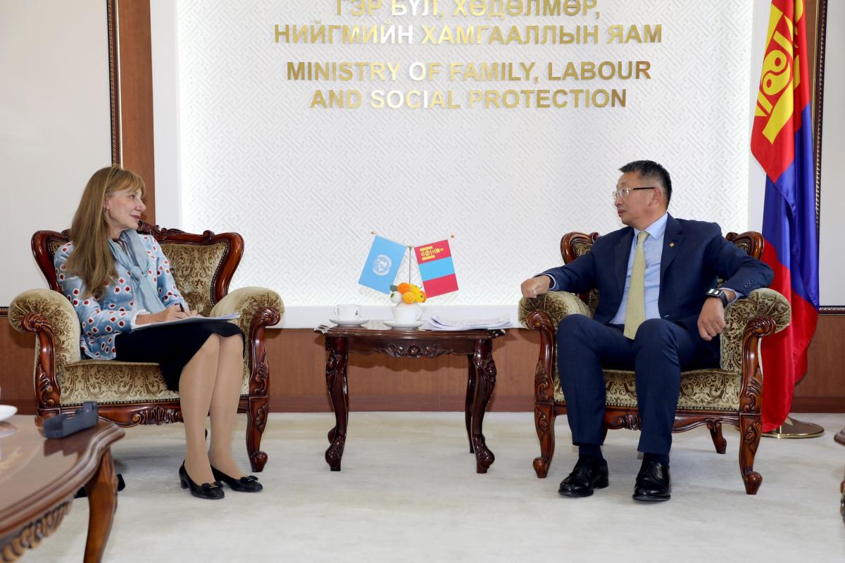 Гэр бүл, хөдөлмөр, нийгмийн хамгааллын сайд Л.Энх-Амгалан Монгол дахь НҮБ-ын Хөгжлийн хөтөлбөрийн Суурин төлөөлөгч Матилда Димовскаг хүлээн авч уулзлаа.