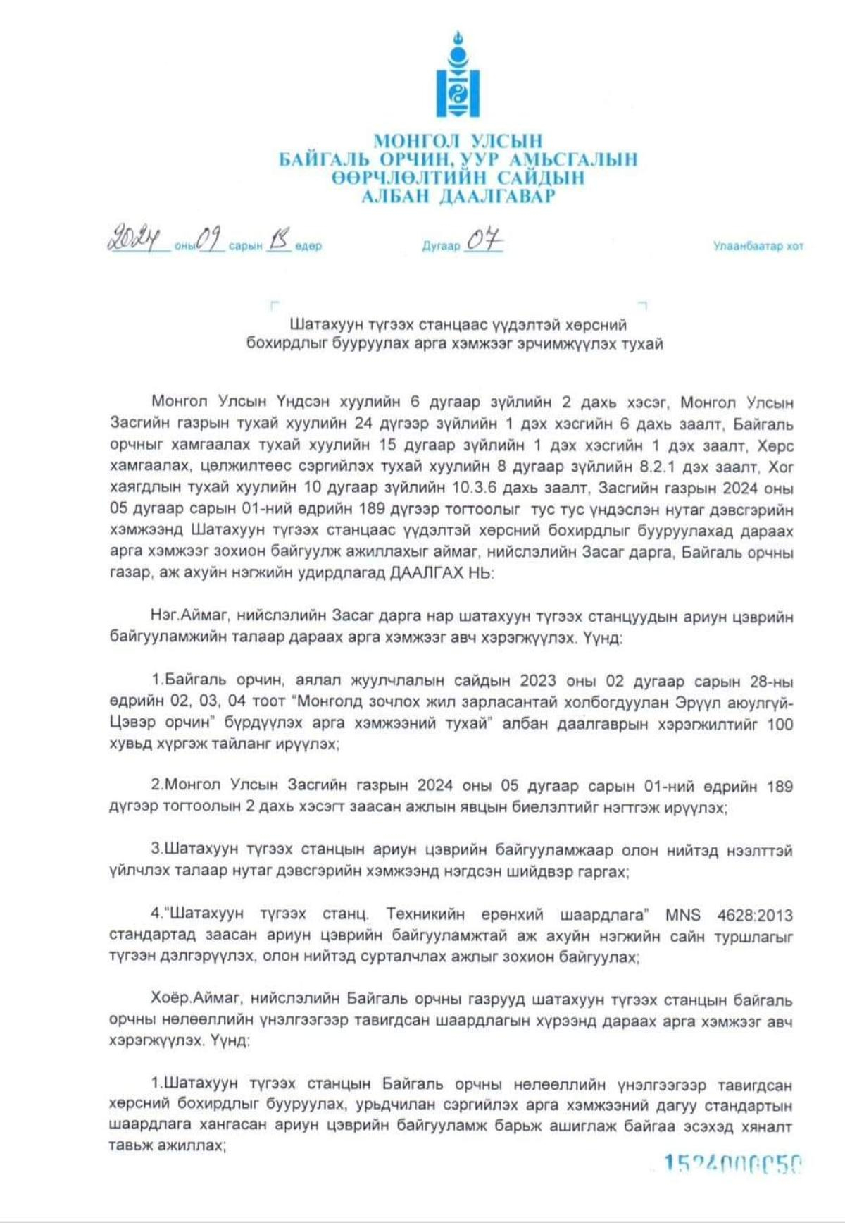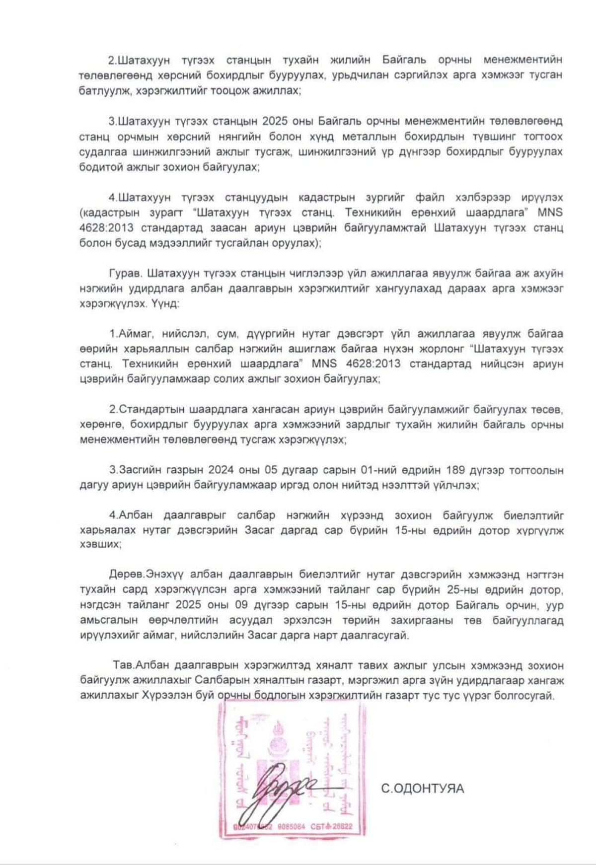 - Албан даалгаврын хэрэгжилтэнд Аж үйлдвэр эрдэс баялгийн яам, орон нутгийн засаг захиргаатай хамтарч хяналт тавих зэрэг асуудлуудыг тусгасан байна гэж БОУАӨЯ-аас мэдээллээ.