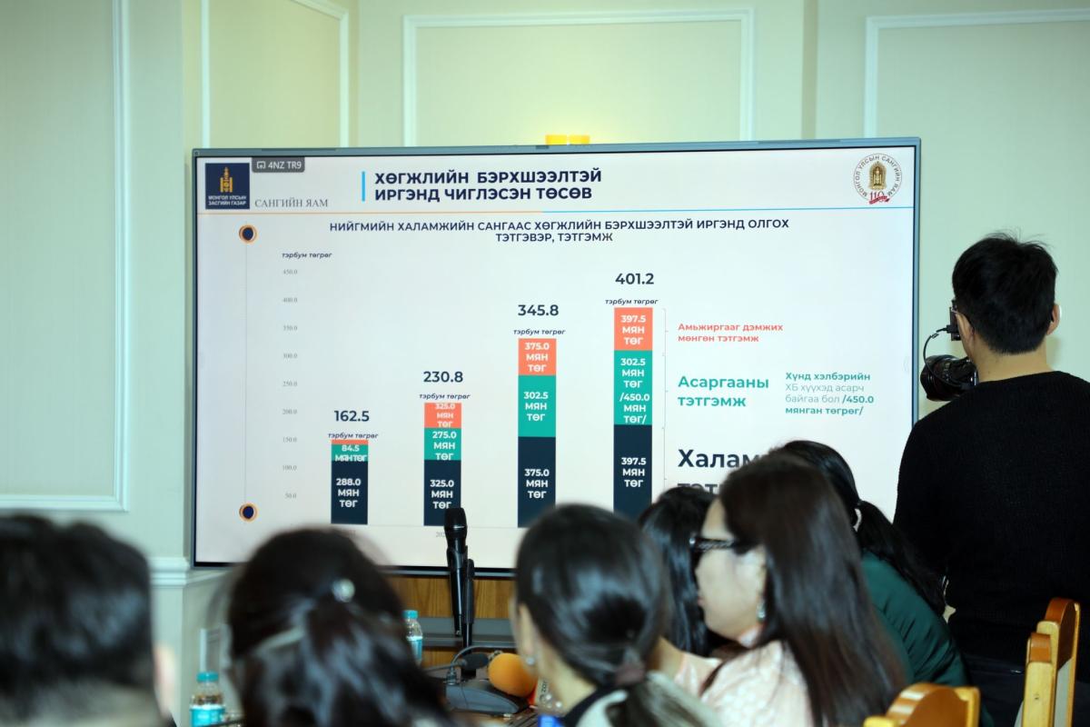 Сангийн яам хөгжлийн бэрхшээлтэй иргэнд зориулсан шинэ зардлын ангилал үүсгэж, 2025 онд Гэр бүл, хөдөлмөр, нийгмийн хамгааллын, Боловсролын, Эрүүл мэндийн, Хууль зүй, дотоод хэргийн яамны төсөвт 2,5 тэрбум төгрөг тусгасан байна.