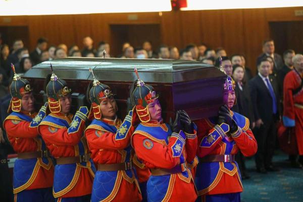 “Монгол Улсын анхны Ерөнхийлөгч, БНМАУ-ын АИХ-ын Тэргүүлэгчдийн дарга, Монгол Улсын төрийн дээд шагнал “Чингис хаан” тэргүүн зэргийн одонт, төр, нийгмийн нэрт зүтгэлтэн, Монголын ард түмний эрхэм хүн Пунсалмаагийн Очирбат Тантай монгол төр, Монголын ард түмэн өнөөдөр гүн хүндэтгэлтэйгээр салах ёс гүйцэтгэж байна.