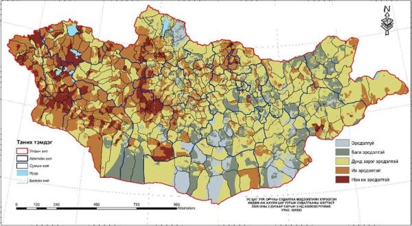 Ус цаг уур, орчны судалгаа мэдээллийн хүрээлэнгээс ган зуншлага, цас зуд, бэлчээртэй холбоотой газрын ажиглалтын болон хиймэл дагуулын олон төрлийн мэдээг нэгтгэн боловсруулж, зудын эрсдэлийн зураглал, үнэлгээг гаргаж байна. Уг үнэлгээг өнгөрсөн зуны ган, зуншлага, өвөл-хаврын бэлчээрийн даац, бэлчээрийн ургац, малын тоо, агаарын температур, хур тунадасны дундажтай харьцуулсан хазайлт, цасны бүрхэц, зузаан болон дараа сарын агаарын температур, хур тунадасны урьдчилсан мэдээг ашиглан гаргадаг.