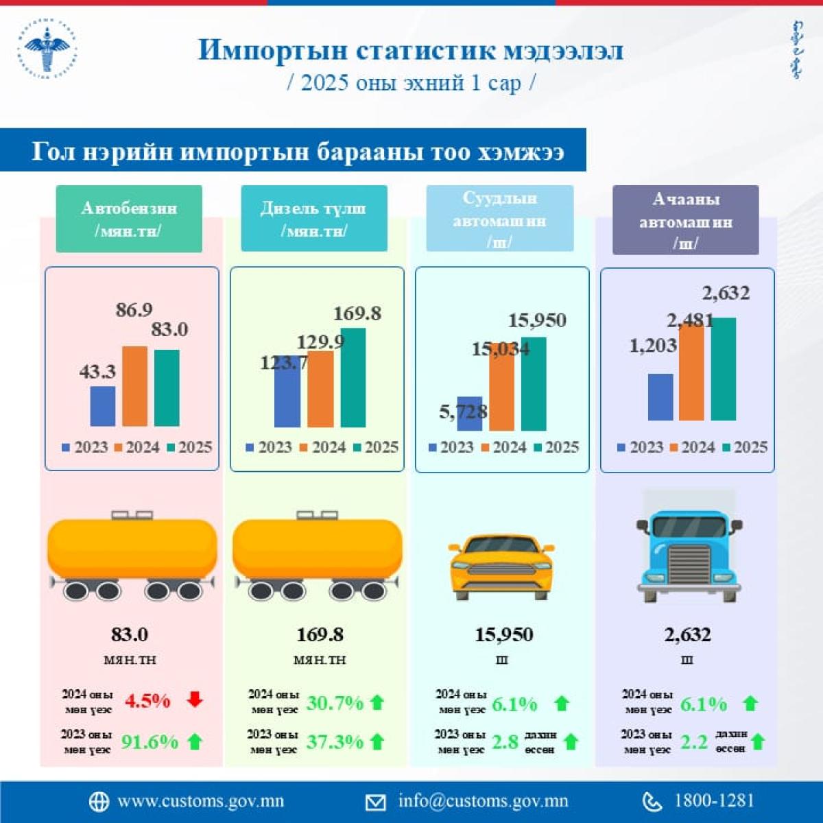 Импортоор нийт 973.2 сая ам.долларын бараа, түүхий эд оруулсан нь 2024 оны мөн үеэс 37.2 сая ам.доллараар буюу 4.0 хувиар өссөн байна.