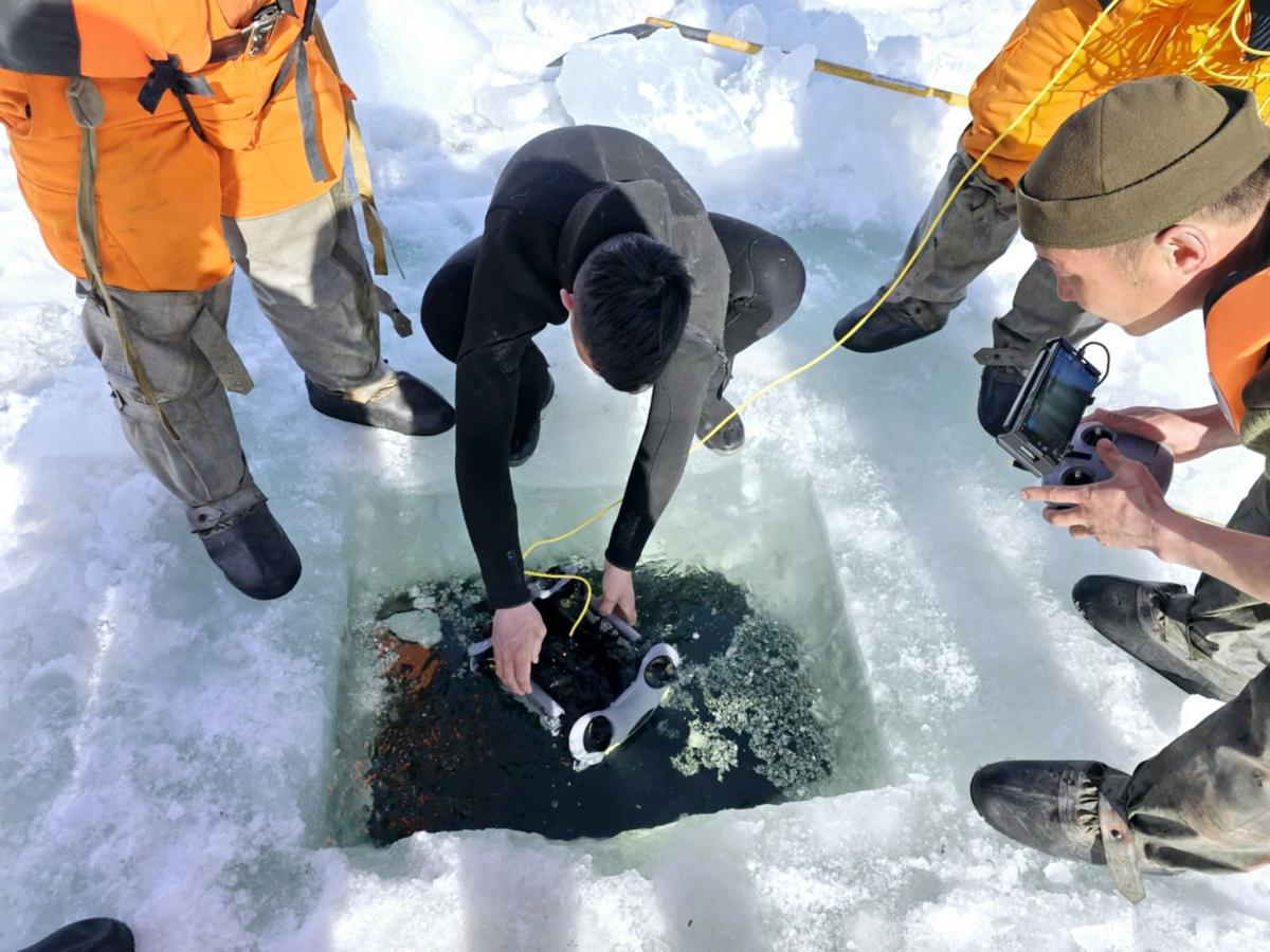 Увс нууран дээгүүр тээвэрлэлт хийж яваад мөсөнд цөмөрсөн "Hino" загварын хоёр гэр ачсан автомашиныг татан гаргахаар Онцгой байдлын газрын Эрэн хайх, аврах салбарын аврагчид цооног гарган 11 метрийн гүнд шумбалт хийж мөсөн доогуур татах ажлыг зохион байгуулж байна.