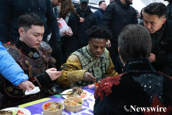 Тэгвэл тэрбээр яг одоо Улаанбаатар хотын төв талбай дээр дээл, хантаазтай IRL стрийм хийж байна.