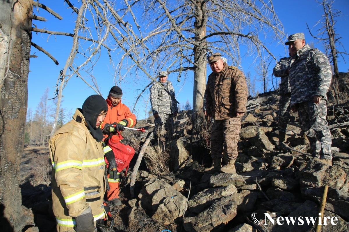 ОБЕГ-ын дарга, хошууч генерал Г.Ариунбуян нийслэлийн Хан-Уул дүүргийн 11 дүгээр хороо Богдхан ууланд өчигдөр /2025.04.28/ гарсан ойн түймрийн нөхцөл байдалтай танилцан, газар дээр нь ажиллаж байна гэж мэдээллээ.