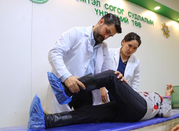 Бүгд Найрамдах Турк улсын “Медикана” эмнэлгийн төлөөлөл, их эмч Tuna PEHLIVANOGLU болон Б.Бота нар ГССҮТ-ийн эмч мэргэжилтнүүдтэй хамтарч нурууны төрөлхийн болон хүнд хэлбэрийн мурийлт, өвдөг, түнхний үений гэмтэл согогийн үзлэг оношилгоо хийлээ.