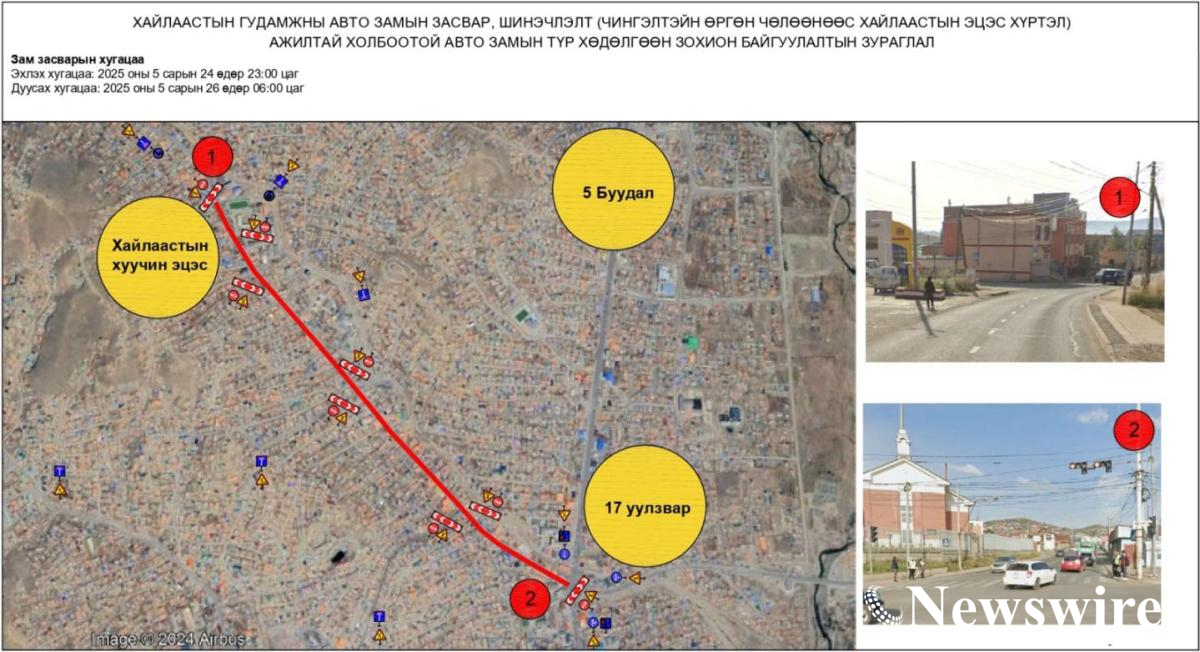 Чингэлтэй дүүргийн 13, 15, 16 дугаар хороо, Чингэлтэйн өргөн чөлөөнөөс Хайлаастын эцэс хүртэл 4 км авто замыг гурван хэсэгт хэсэгчлэн хааж, шинэчилнэ. Тодруулбал, тавдугаар сарын 22-ны 23:00 цагаас 26-ны 06:00 цагийн хооронд хааж, хэсэгчлэн хааж, засварлана.