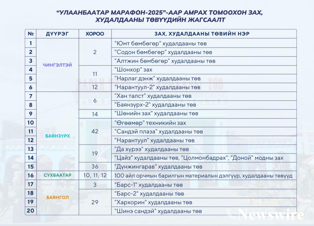 Энэ өдөр доорх 20 зах, худалдааны төв ажиллахгүй.