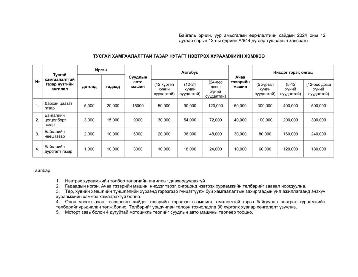Тусгай хамгаалалттай газар нутгийн тухай хуулийн 30 дугаар зүйлийн 1 дэх хэсэг, Авто замын тухай хуулийн 12 дугаар зүйлийн 12.1.3 дахь хэсэг, 30 дугаар зүйлийн 30.3 дахь хэсэг, Байгаль орчин, Уур амьсгалын өөрчлөлтийн сайдын 2024 оны 12 дугаар сарын 12-ний өдрийн “Тусгай хамгаалалттай газар нутагт нэвтрэх хураамжийн хэмжээг шинэчлэн тогтоох тухай” А/844 дугаартай тушаалыг зэргийг үндэслэн Богдхан уулын Манзуширын аманд Нэвтрэх цэгийн үйл ажиллагааг шинээр эхлүүлэн батлагдсан тушаалын дагуу төлбөр хураамжыг авч эхлэлээ.