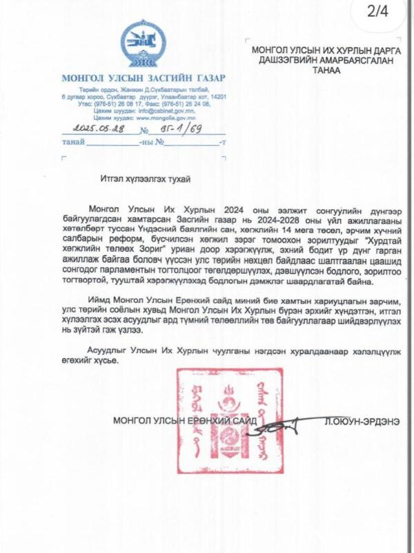 Ийм ГУРВАН асуултанд УИХ НЭГ хариултаар хариу өгөх улс төр, эрх зүйн нөхцөл байдал үүсэв. 2025.05.29" гэж нийтэлжээ.