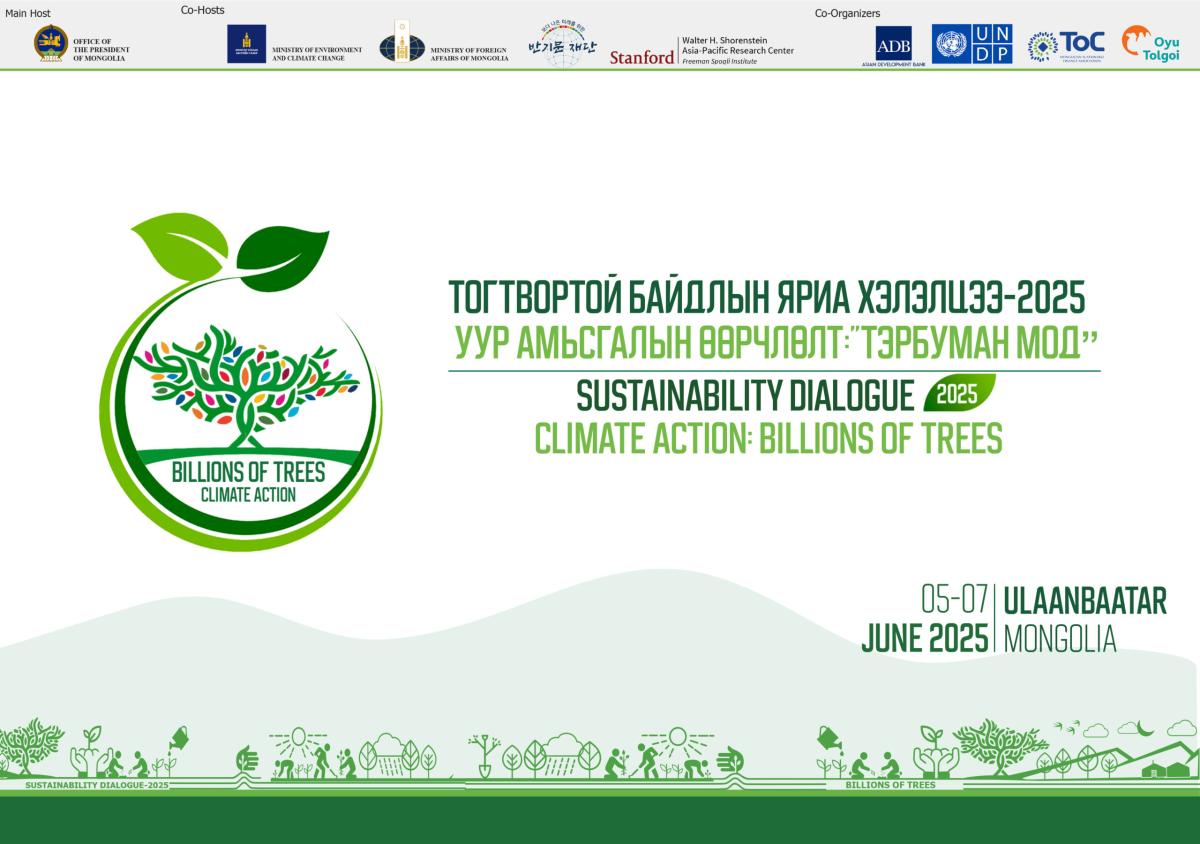 Монгол Улсын Ерөнхийлөгчийн ивээл дор “Тогтвортой байдлын яриа хэлэлцээ 2025 – Уур амьсгалын өөрчлөлт: Тэрбуман мод” чуулга уулзалт 2025 оны 06 дугаар сарын 05-07-ны өдрүүдэд Төрийн ордонд болно.