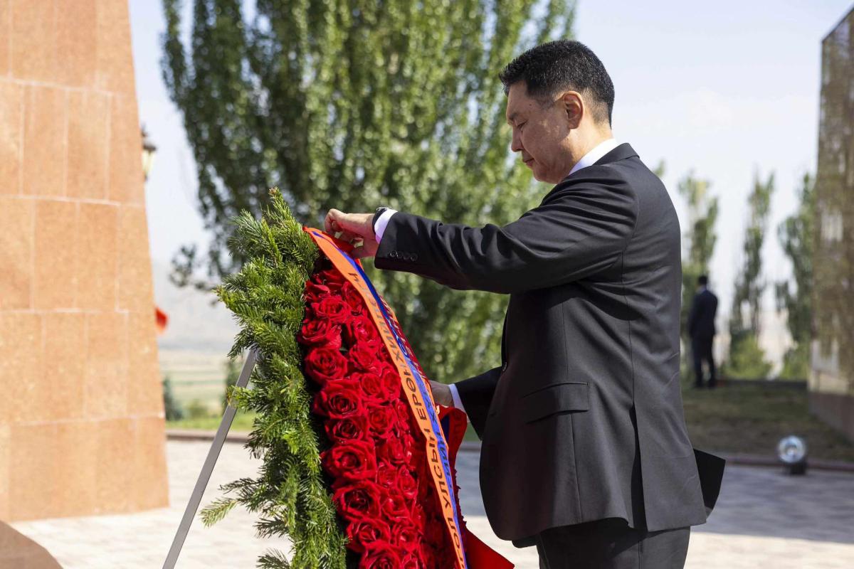 Төлөөлөгчдийг “Ата-Бейит” цогцолборт хүрэлцэн ирэхэд Киргиз Улсын Төрийн хүндэт харуул жагсаж, Үлгэр жишээ үлээвэр найрал хөгжим угтлаа.