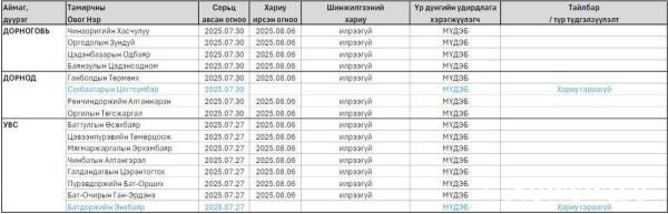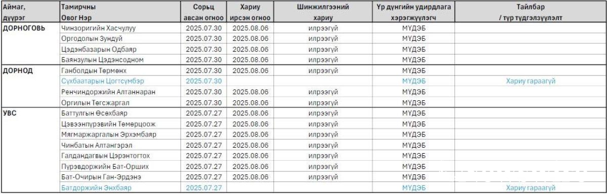 Монгол Улсын “Үндэсний их баяр наадмын тухай хууль”-ийн хүрээнд, 2025 оны 7 дугаар сарын 27-30ны өдрүүдэд зохион байгуулагдсан Дорноговь, Дорнод болон Увс аймгуудын баяр наадмын үеэр үндэсний бөхийн барилдаанд амжилттай барилдаж, шөвгөрсөн бөхчүүдээс допингийн хяналтын сорьц аван ажиллалаа.