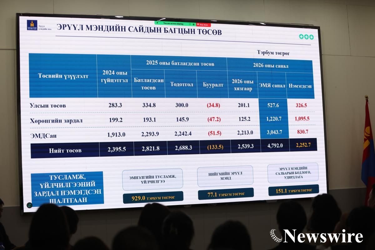 Эрүүл мэндийн салбарын 2026 оны төсвийн төсөлд олон нийтээс санал авах танхимын хэлэлцүүлгийг шууд дамжуулж байна.