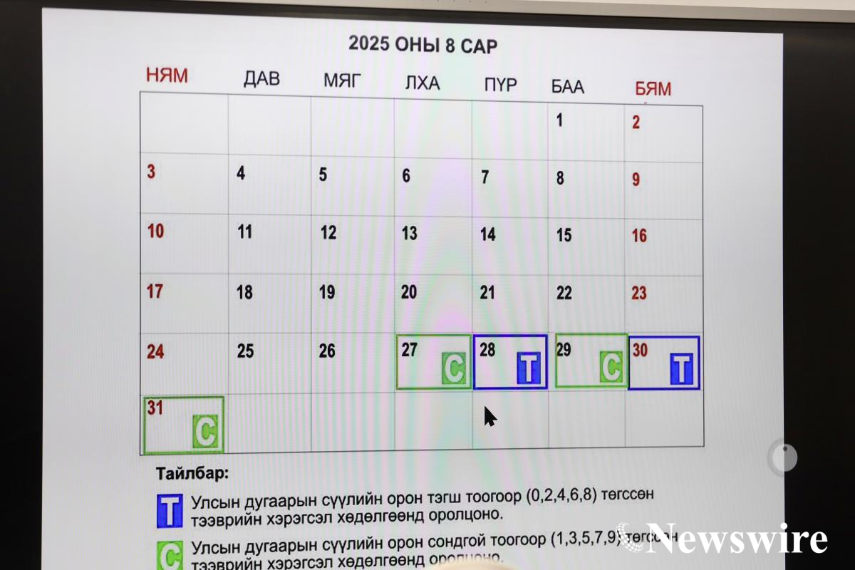 Тодруулбал, сондгой тоогоор төгссөн бол наймдугаар сарын 27, 29, 31-нд, есдүгээр сарын 3, 5, 7, 9, 11, 13, 15-нд хөдөлгөөнд оролцоно. Тэгш тоогоор төгссөн бол наймдугаар сарын 28, 30-нд, есдүгээр сарын 2, 4, 6, 8, 10, 12, 14, 16-нд хөдөлгөөнд оролцоно” гэлээ.