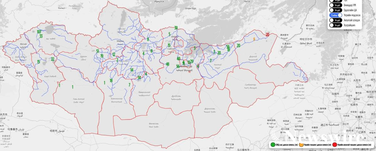 Өнөөдрийн /2025.09.01/ байдлаар Улз гол Дашбалбар орчимд үерийн түвшинг 9 см, Эрээнцав орчимд үерийн аюултай түвшинг 20 см даван үерлэж байна.