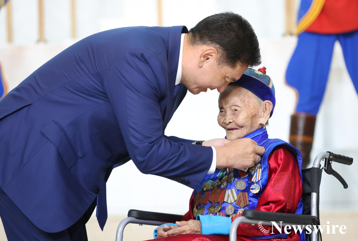 Монгол Улсын Ерөнхийлөгч, Зэвсэгт хүчний Ерөнхий командлагч Ухнаагийн Хүрэлсүх эх орныхоо тусгаар тогтнол, бүрэн эрхт байдлын баатарлаг түүхийн эзэд болсон ахмад дайчдад Чөлөөлөх дайны ялалтын 80 жилийн ойн мэндийг өргөн дэвшүүллээ.