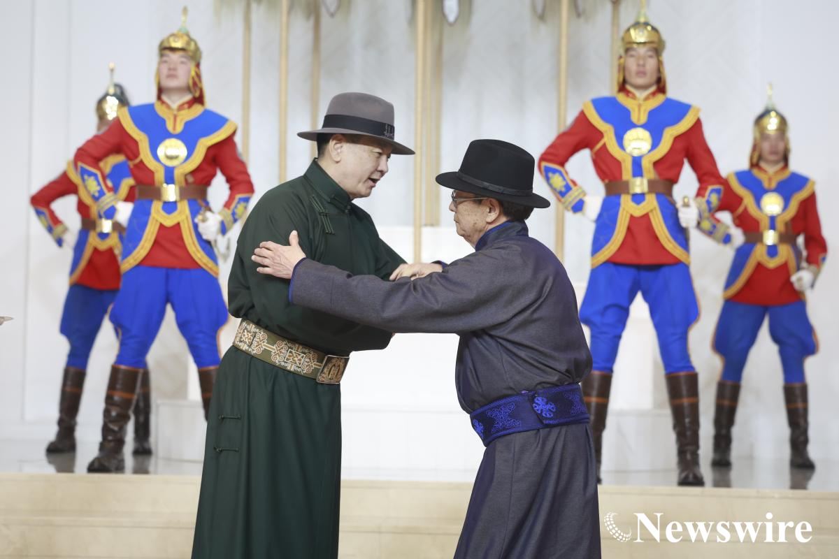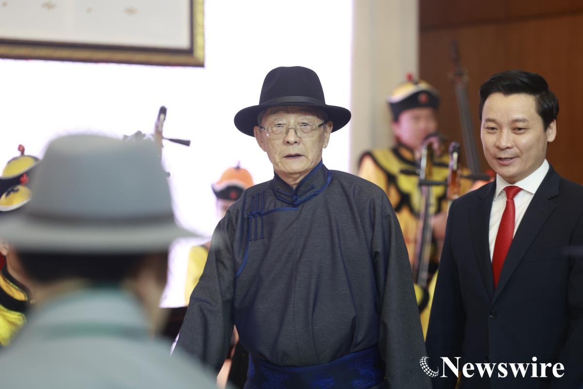 Ерөнхийлөгч У.Хүрэлсүх “Чингис хаан” тэргүүн зэргийн одон гардуулсны дараа хэлсэн үгийг хүргэж байна.