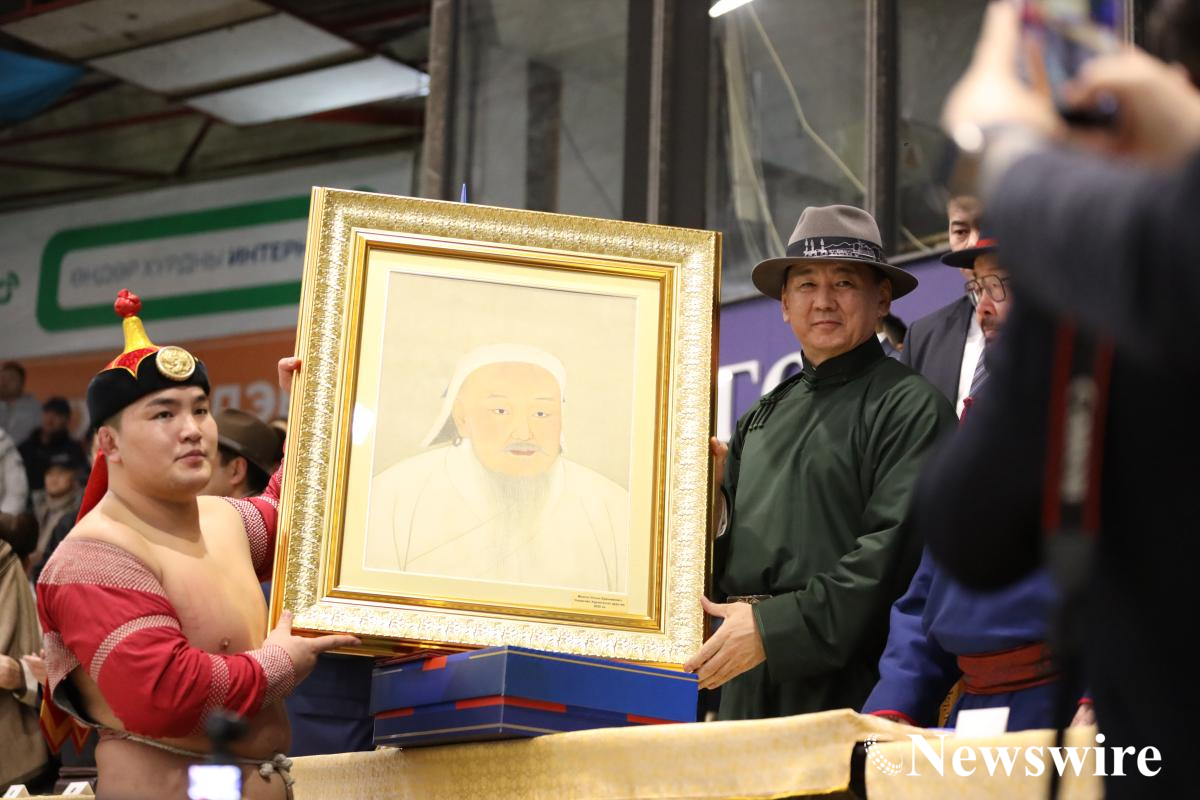 Их эзэн Чингис хааны мэндэлсний 863 жилийн ой, “Монгол бахархлын өдөр”-т зориулсан "ЧИНГИС ХААН ЦОМ"-ын төлөөх барилддаанд улс, аймгийн алдар цолтой 128 бөх барилдлаа. Ингээд Улсын арслан Э.Батмагнай түрүүлж, "ЧИНГИС ХААН ЦОМ"-ын эзэн болсон бол Улсын заан С.Сүхбат үзүүрлэлээ.