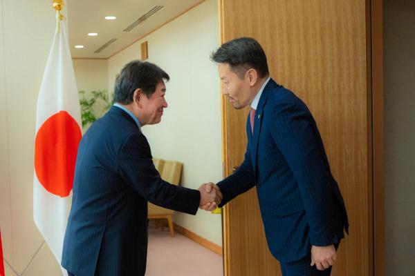 Монгол Улсын Шадар сайд Х.Ганхуяг Япон Улсад хийж буй ажлын айлчлалынхаа хүрээнд Япон Улсын Гадаад хэргийн сайд Т.Мотэги-тэй 2025 оны 11 дүгээр сарын 27-ны өдөр уулзав.
