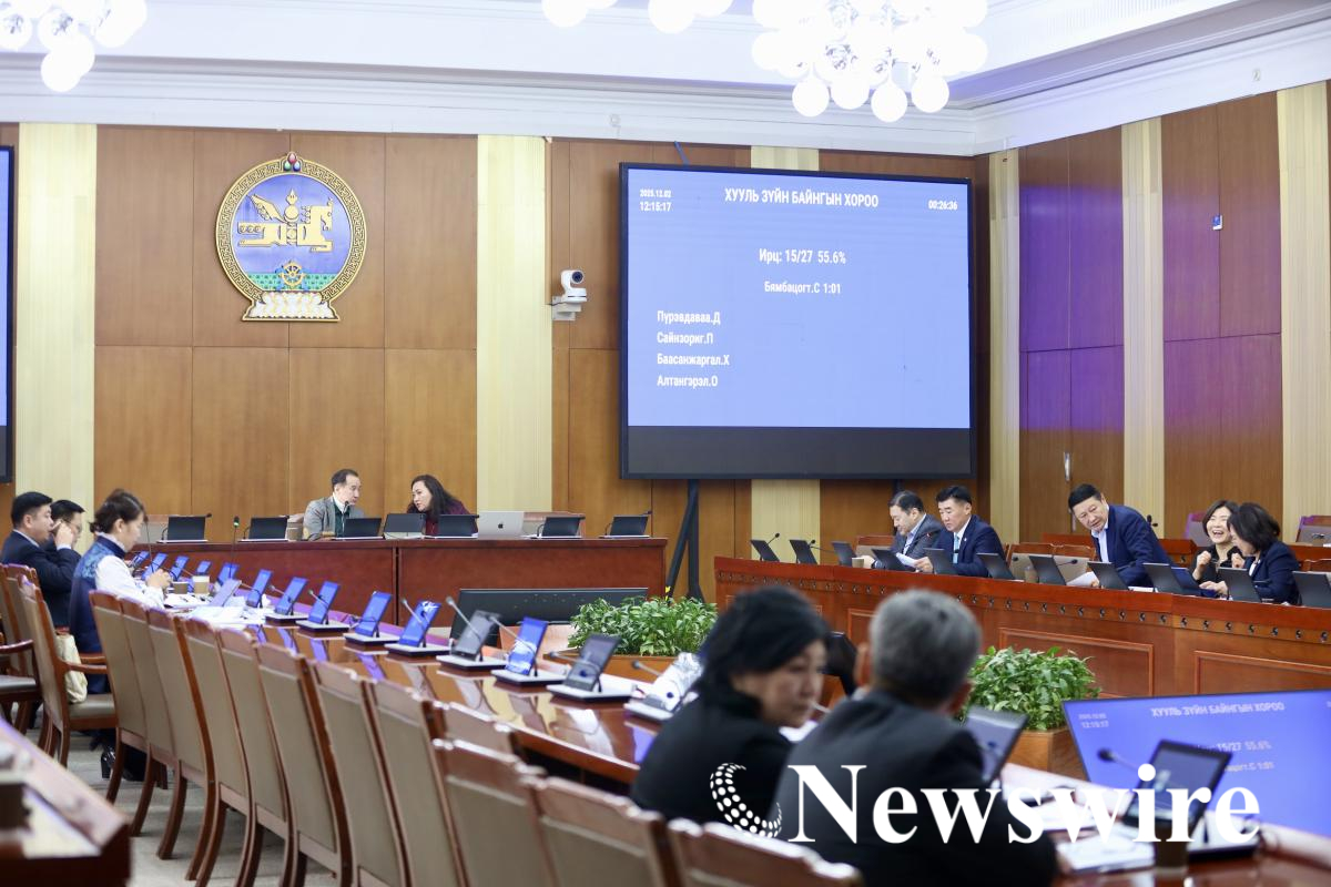 Улсын Их Хурлын Хууль зүйн байнгын хорооны өнөөдрийн (2025.12.02) хуралдаан 11 цаг 51 минутад гишүүдийн 51.9 хувийн ирцтэйгээр эхэлж, гурван асуудал хэлэлцэхээр товлов.