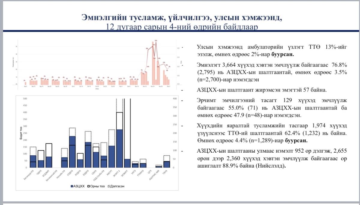 - Нийслэлд өвчлөл буурч байгаа нь сурагчдыг цахимд шилжүүлж, амны хаалтын хэрэглээ нэмэгдсэн, 5 хүртэлх насны хүүхдийг томуу төст өвчнөөр өвдсөн тохиолдолд гэрээр эмчлэх боломжийг бүрдүүлсэн, сургалт, сурталчилгааг эрчимжүүлсэнтэй холбоотой.