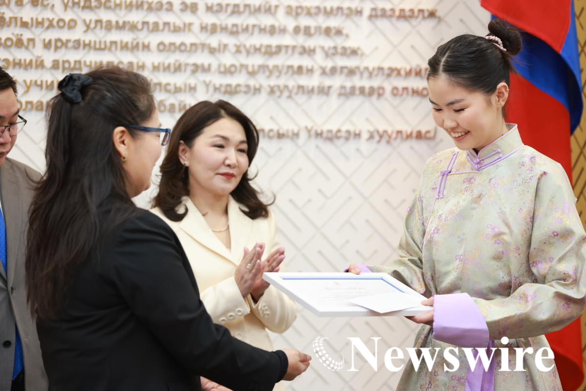 Эсээ бичлэгийн уралдаанд шалгарсан оюутан, сурагчдад Монгол Улсын Их Хурлын Ерөнхий нарийн бичгийн дарга Л.Өлзийсайхан, УИХ-ын Тамгын газрын Тэргүүн дэд дарга П.Батбаатар, Парламентын судалгаа, хөгжлийн хүрээлэнгийн захирал Д.Бумдарь нар өнөөдөр /2026.01.12/ Төрийн ордны “Үндсэн хууль” танхимд шагнал гардууллаа.
