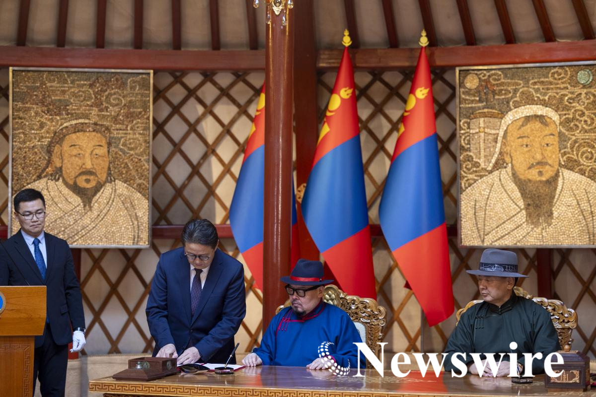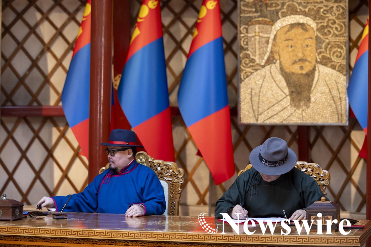 Зарлигийг уншиж сонордуулсны дараа Монгол Улсын Ерөнхийлөгч Ухнаагийн Хүрэлсүх, Монгол Улсын Ерөнхий сайд Гомбожавын Занданшатар нар зарлигт гарын үсэг зурлаа.
