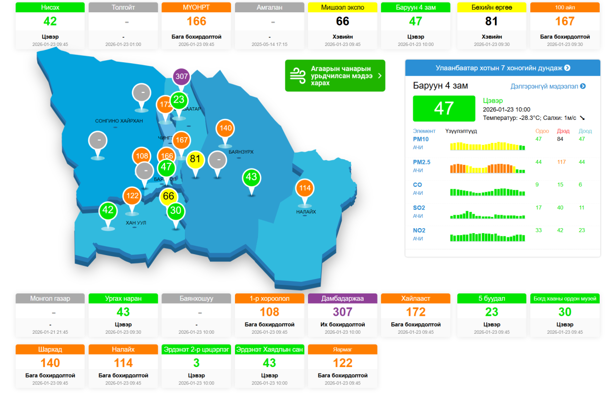 Агаарын чанарын индекс 10:00 цагийн байдлаар: