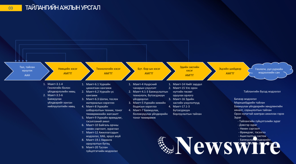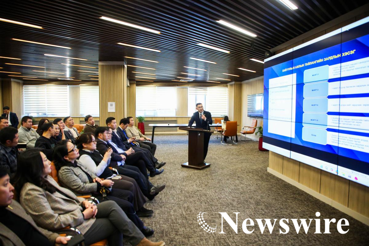 “Геологи, хайгуулын салбарын өнөөгийн байдал, цаашид баримтлах бодлого“ сэдвээр Ажүйлдвэр,эрдэс баялгийн яамны Геологийн бодлогын газрын дарга Х.Санчигдорж танилцуулга хийлээ.
