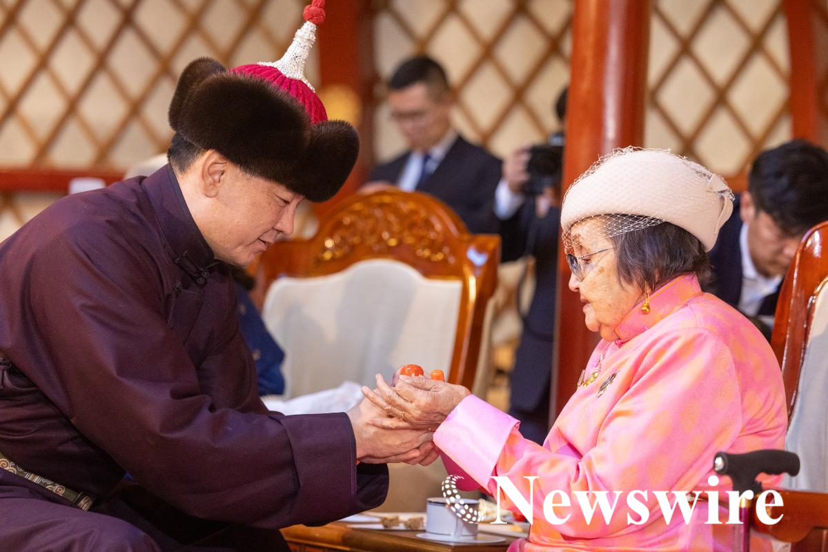 Билгийн тооллын XVII жарны "Сүрээр дарагч" хэмээх гал морин жилийн сарын шинийн баярын өглөө 08:25 цагт Монгол Улсын Ерөнхийлөгч У.Хүрэлсүх, Ерөнхий сайд Г.Занданшатар, УИХ-ын дарга Н.Учрал нар Төрийн есөн хөлт цагаан туганд хүндэтгэл үзүүлэв.