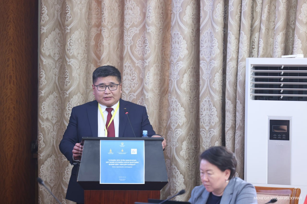 “Иргэний хуулийн хэрэгжилтийн өнөөгийн нөхцөл байдал” сэдэвт хэлэлцүүлэг өнөөдөр /2026.03.03/ үдээс хойш “Өв залгамжлал, олон улсын иргэний эрх зүй” сэдвийн хүрээнд үргэлжлэв. Хэлэлцүүлгийн эхэнд Монгол Улсын их сургуулийн Хууль зүйн сургуулийн дэд профессор (Ph.D) Э.Байгал “Олон улсын хувийн эрх зүйн зохицуулалт ба олон улсын чиг хандлага” сэдвээр илтгэл танилцуулав.