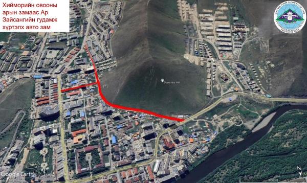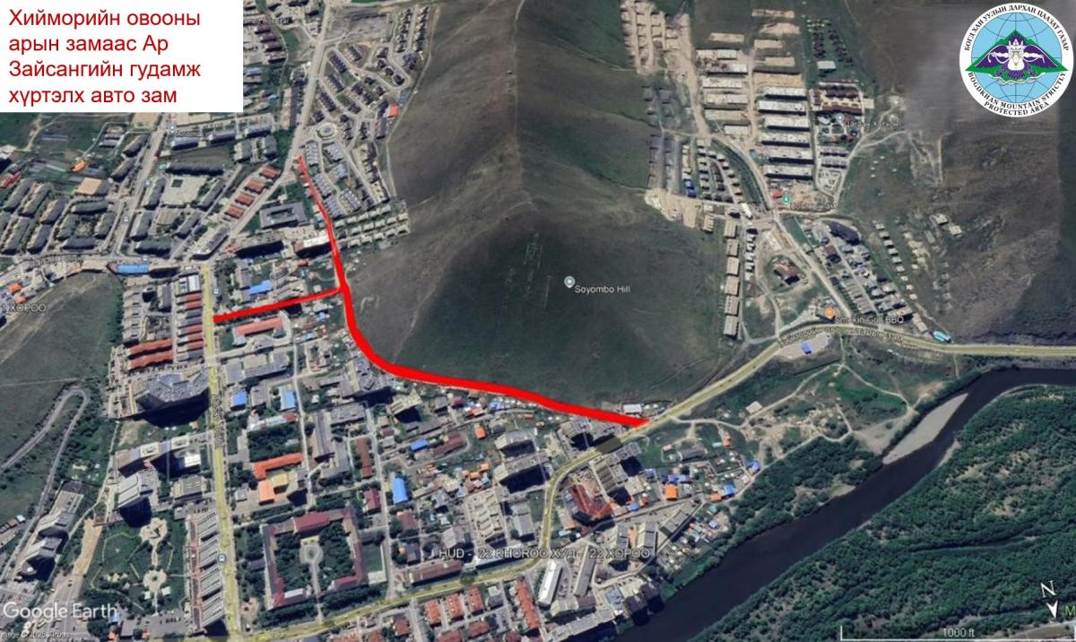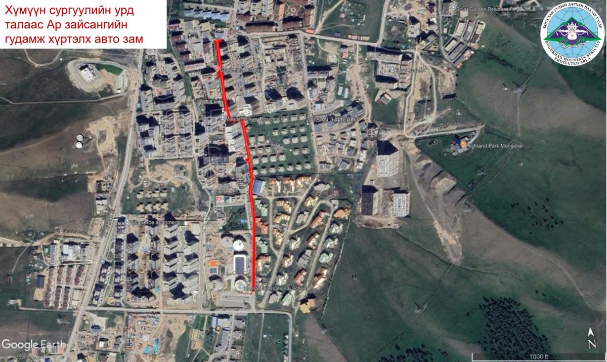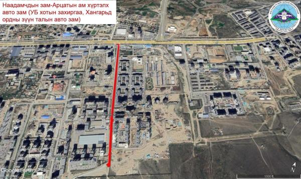 - Хан-Уул дүүрэг 11 дүгээр хороо, Хүмүүн суруулийн урд тал Ар зайсангийн гудамж хүртэлх авто зам;
