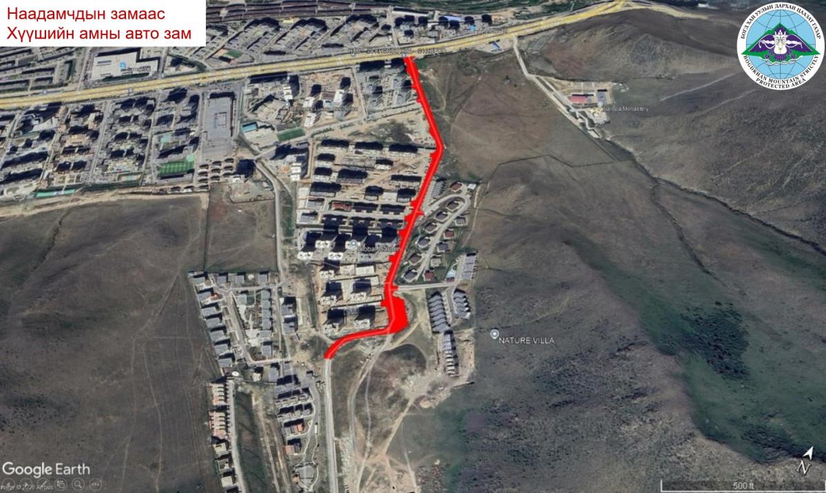 - Хан-Уул дүүрэг 24 дүгээр хороо, Наадамчдын замын урд талаас Хүүшийн амны авто зам;