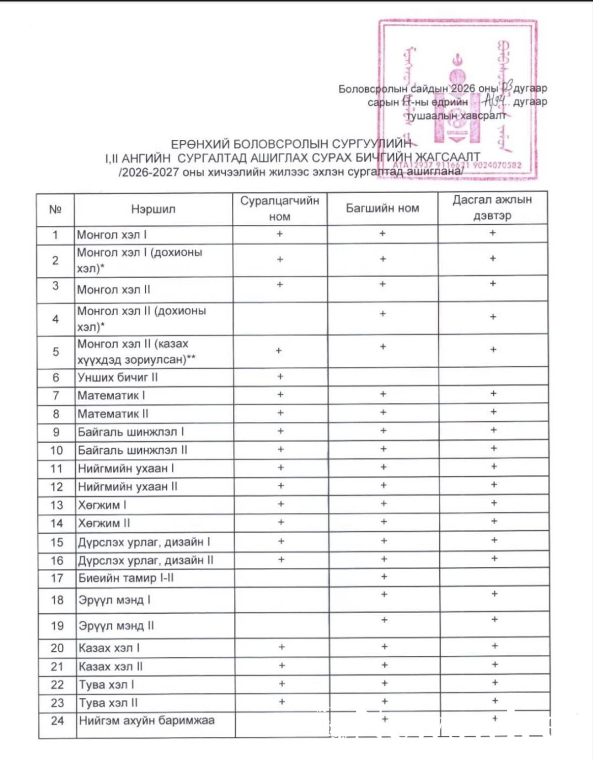 Боловсролын үндэсний зөвлөлөөс сургалтын агуулгыг дэмжсэн бол энэ удаа Ерөнхий боловсролын мэргэжлийн зөвлөлийн хуралдаанаар ЕБС-ийн 1, 2 дугаар ангид 2026-2027 оны хичээлийн жилээс эхлэн хэрэглэх сурах бичгийн жагсаалтыг шинэчлэн батлав. Энэхүү жагсаалтын дагуу судлагдахуун тус бүрээр сурах бичгийн эх зохиох тэндер зарлаж, сонгон шалгаруулалтыг зохион байгуулна. Ирэх намраас өмнө хэвлэлтэд шилжүүлэх юм.