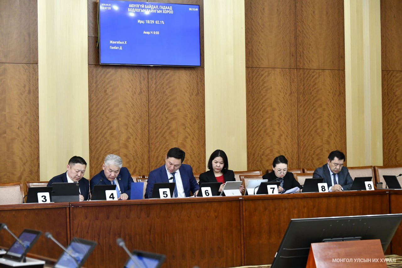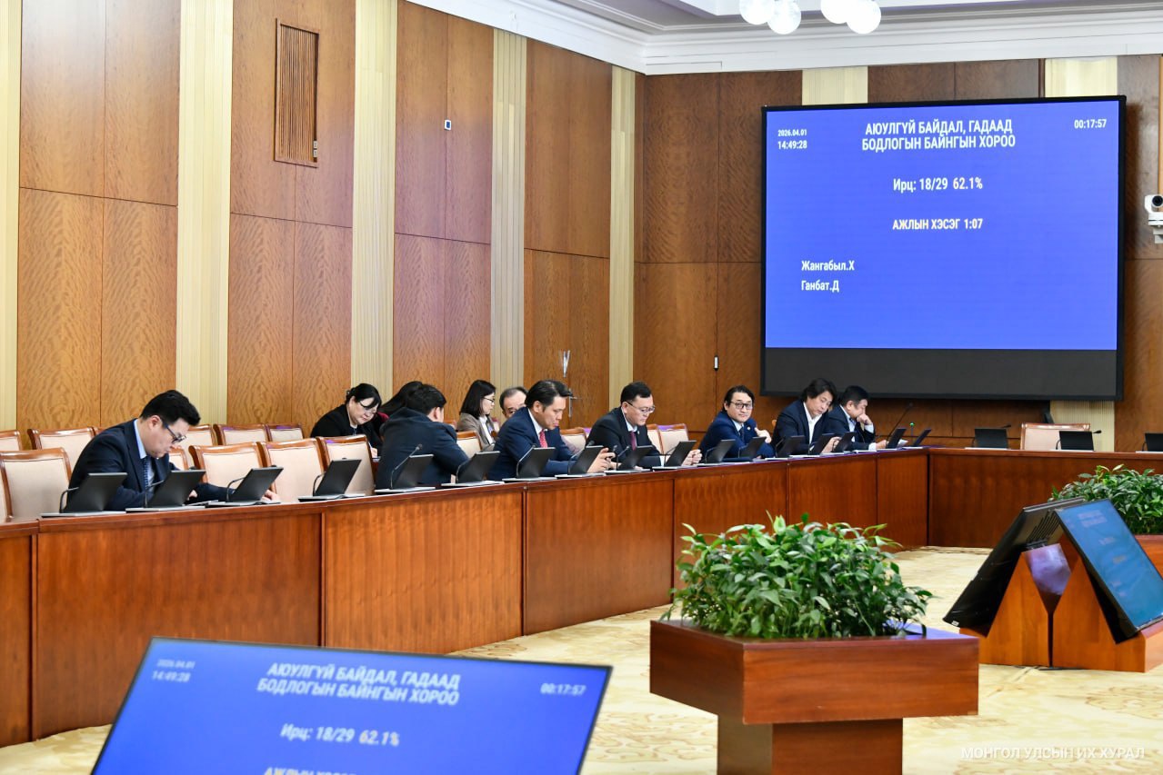 Улсын Их Хурлын Аюулгүй байдал, гадаад бодлогын байнгын хорооны өнөөдрийн (2026.04.01) хуралдаан 14 цаг 32 минутад эхэллээ. Монгол Улсын Их Хурлын чуулганы хуралдааны дэгийн тухай хуулийн 7 дугаар зүйлийн 7.8 дахь хэсэгт заасны дагуу Байнгын хорооны дарга Г.Тэмүүлэн гишүүдийн ирцийг нэр дурдан танилцуулсан юм. Тус Байнгын хорооны 29 гишүүний 19 буюу Улсын Их Хурлын гишүүн Ч.Анар, Э.Болормаа, Д.Бум-Очир, Д.Ганбат, Л.Гантөмөр, Х.Жангабыл, С.Лүндэг, П.Наранбаяр, Г.Номтойбаяр, Г.Очирбат, Б.Тулга, Д.Цогтбаатар, Ө.Шижир, Б.Энхбаяр, Ж.Энхбаяр, Д.Энхтүвшин нар хүрэлцэн ирснээр ирц 58.6 хувь болж, хуралдаан эхэлсэн.