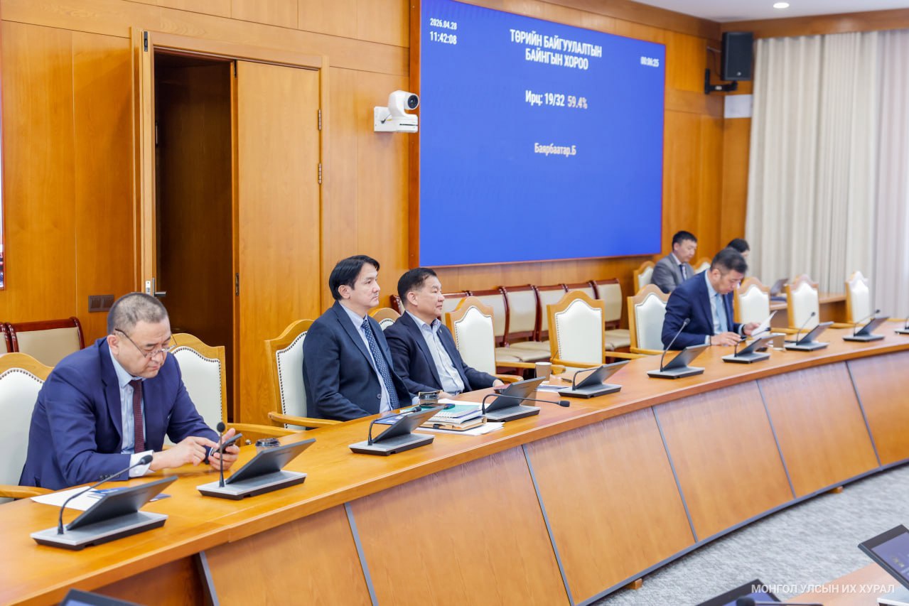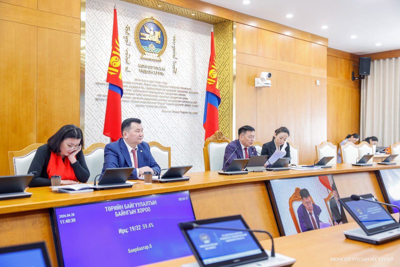 Улсын Их Хурлын Төрийн байгуулалтын байнгын хорооны өнөөдрийн /2026.04.28/ хуралдаан 11.34 цагт А.Ариунзаяа, Ж.Бат-Эрдэнэ, Б.Батбаатар, Ж.Батжаргал, Б.Баярбаатар, Л.Гантөмөр, Ц.Даваасүрэн, Т.Доржханд, С.Зулпхар, Ч.Лодойсамбуу, Л.Мөнхбаатар, Б.Найдалаа, Н.Номтойбаяр, Э.Одбаяр, Ц.Туваан, Б.Хэрлэн, Б.Чойжилсүрэн, Д.Энхтуяа нарын гишүүд хүрэлцэн ирж, 56.3 хувийн ирцтэйгээр эхэллээ. Хуралдааныг УИХ-ын гишүүн Б.Баярбаатар даргалан явуулав.